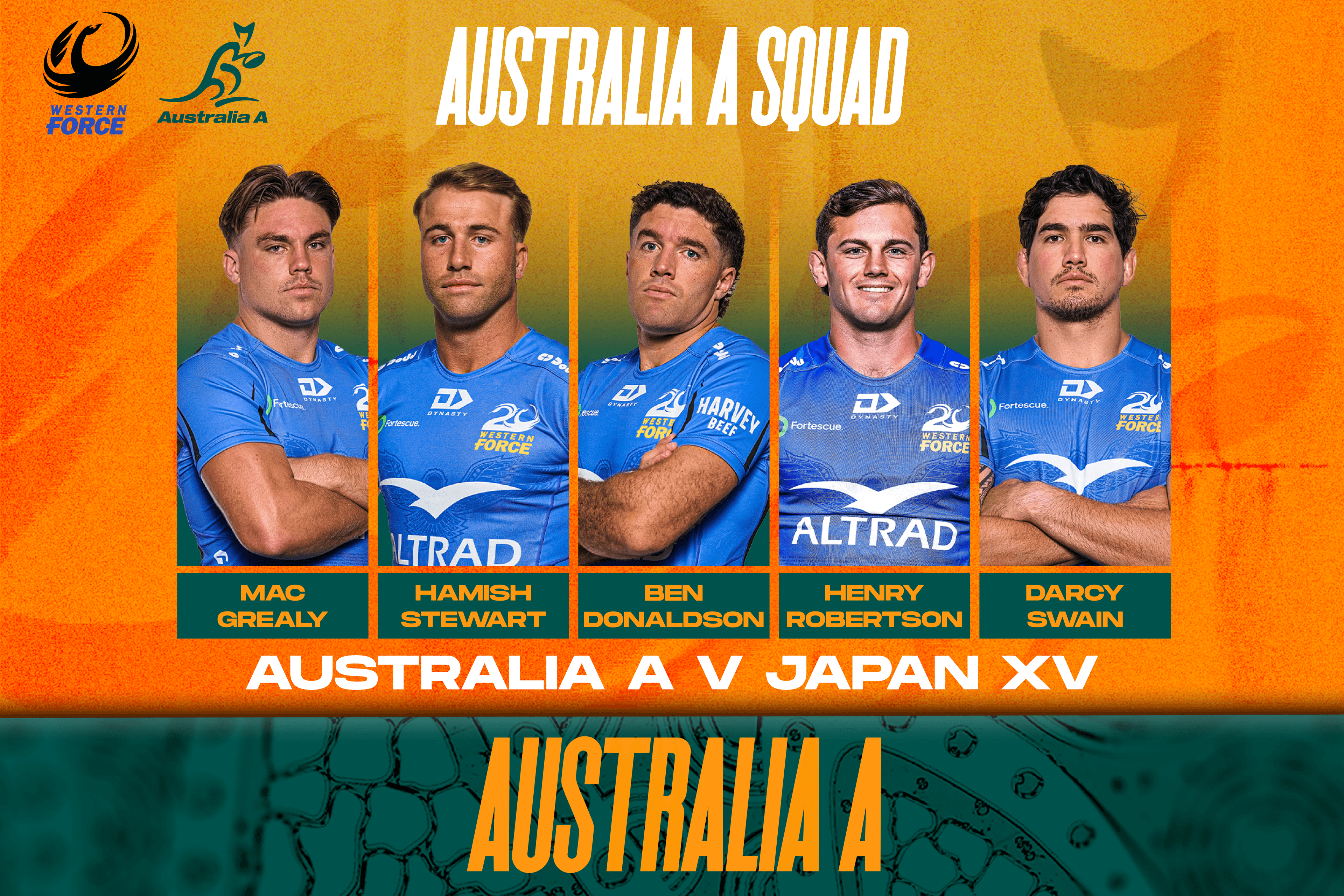 Scrum-half Henry Robertson and outside Mac Grealy are among five Western Force named in the Australia A squad to face Japan XV in Osaka later this month.
