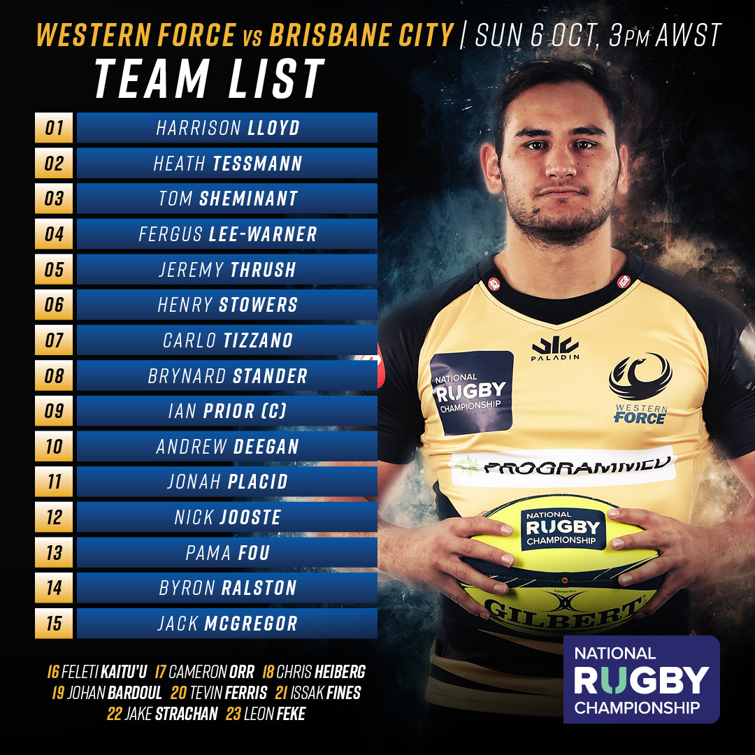 Leading into the Force’s last home game of the National Rugby Championship home-and-away season, head coach Tim Sampson has named a high-octane starting XV for the Force’s crunch clash against Brisbane City this Sunday.