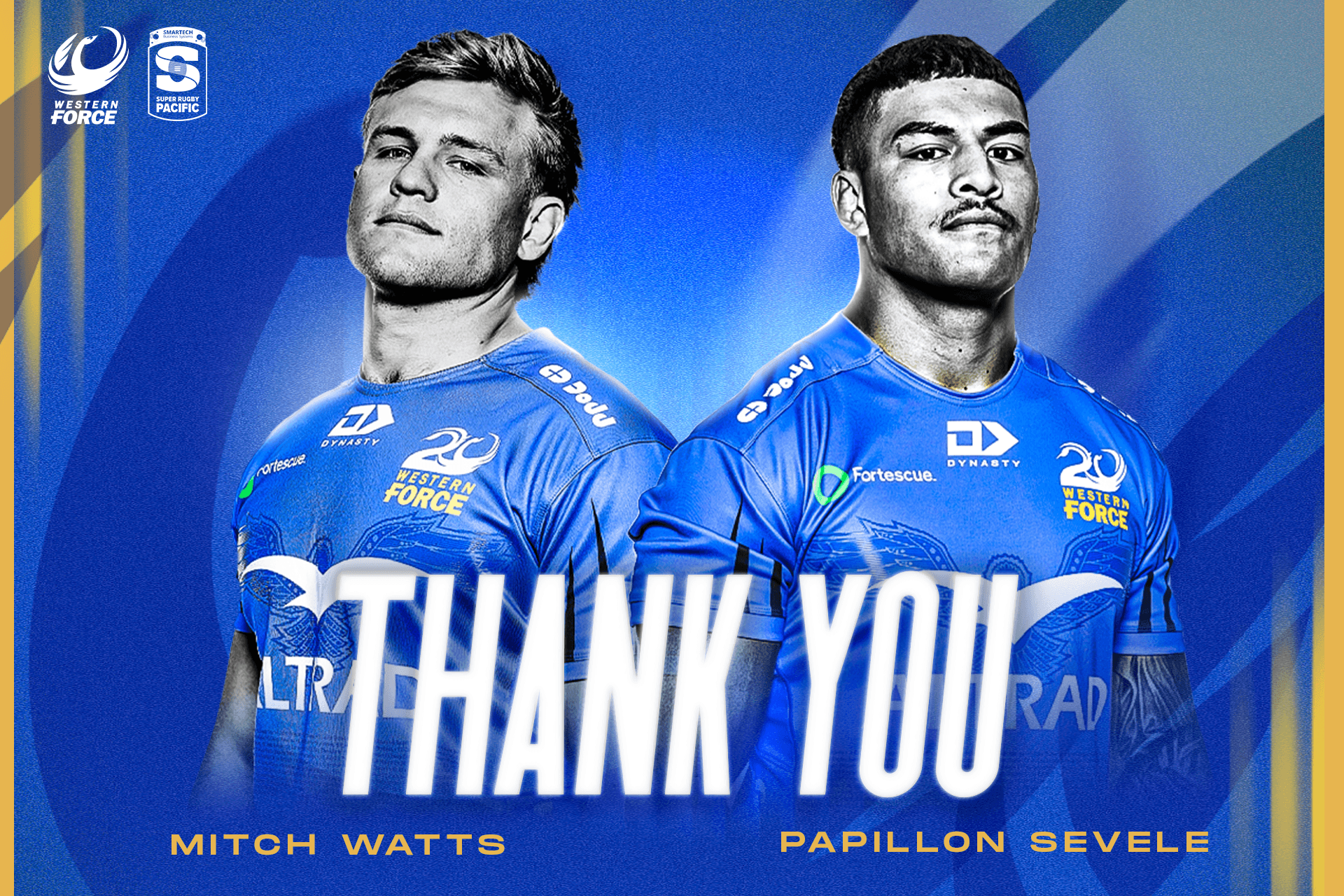 The Western Force thanks Mitch Watts and Papillon Sevele for their service to the Club, with the pair departing following the conclusion of 2025 Super Rugby AUS.