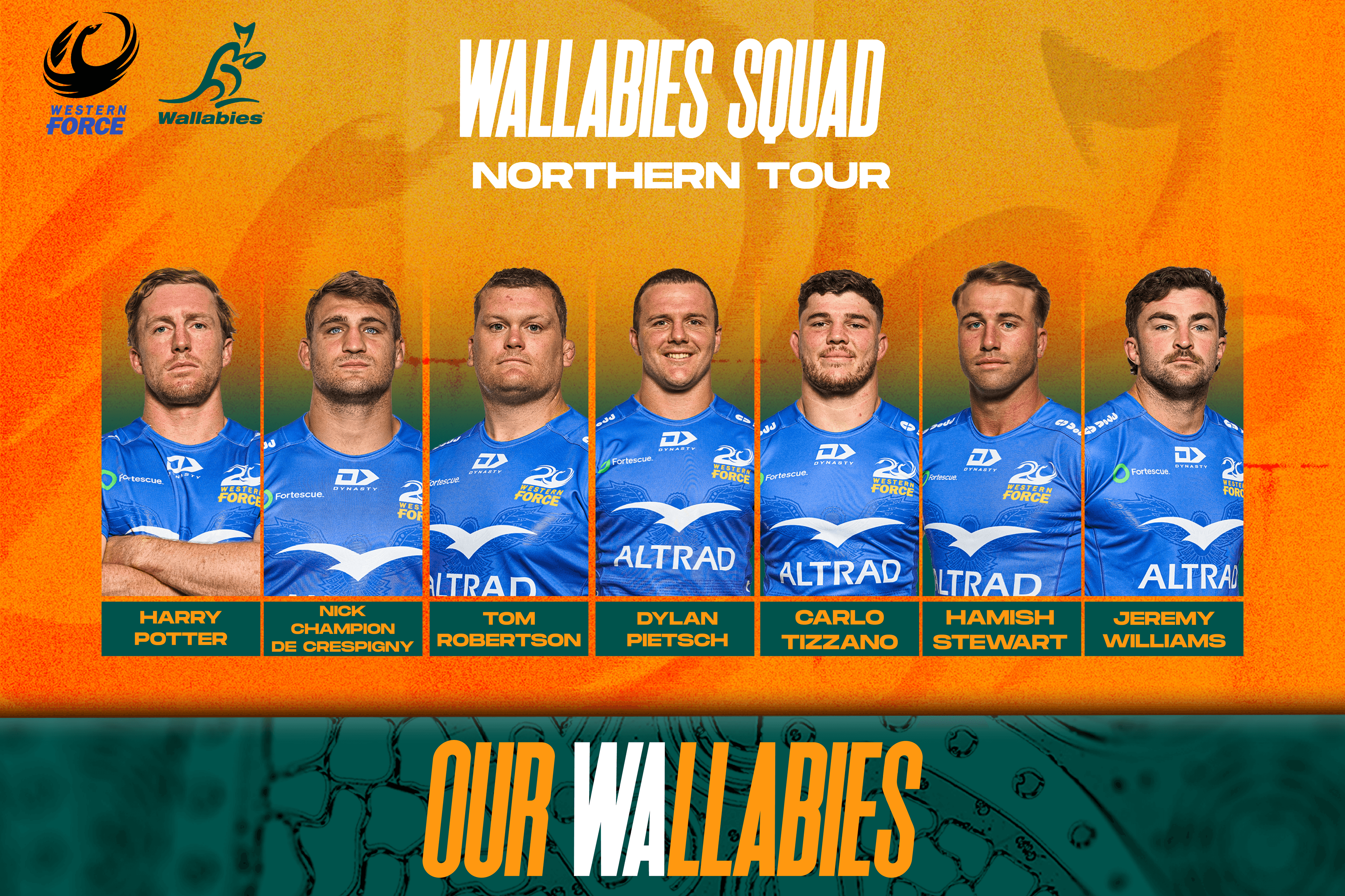 Seven Western Force players have been named by Wallabies coaches for a 34-player squad for the upcoming End of Year Tour.