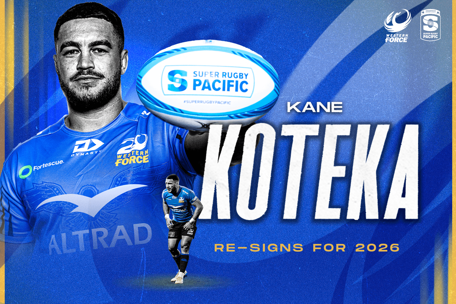 The Western Force is excited to confirm the re-signing of former Nathan Sharpe medal winner Kane Koteka for the 2026 Super Rugby Pacific season.